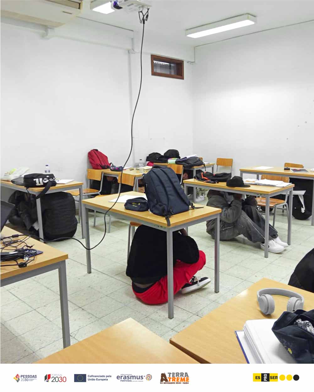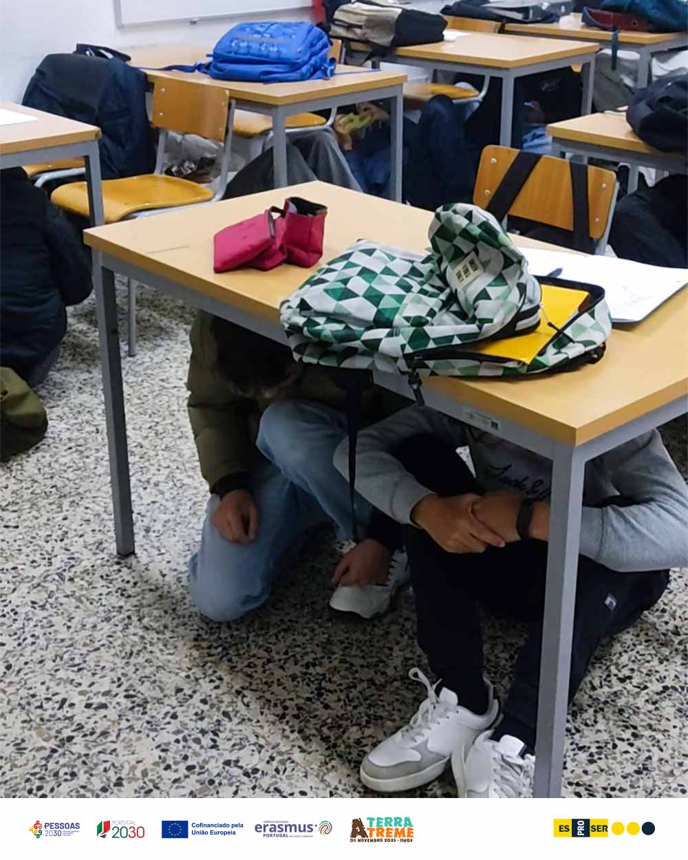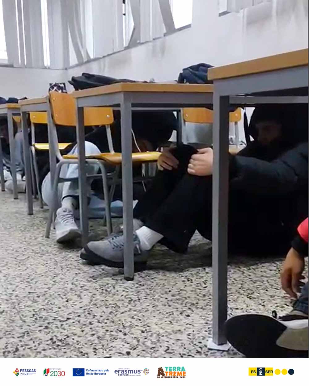 Esta ação de sensibilização tem como principal objetivo preparar a comunidade educativa para saber como agir em caso de sismo, através dos 3 gestos fundamentais: